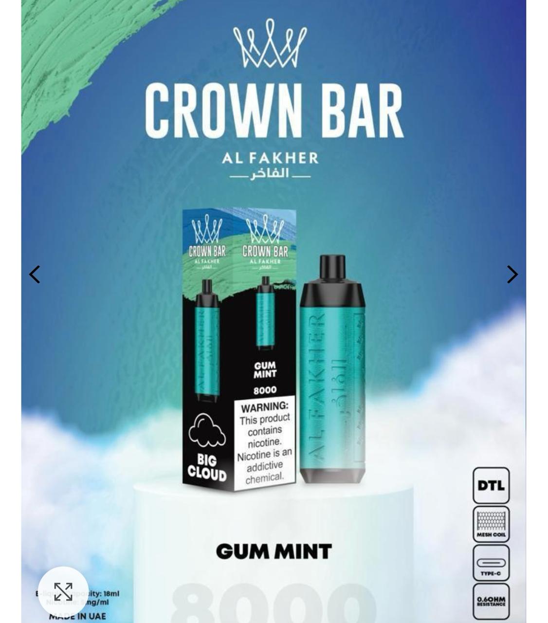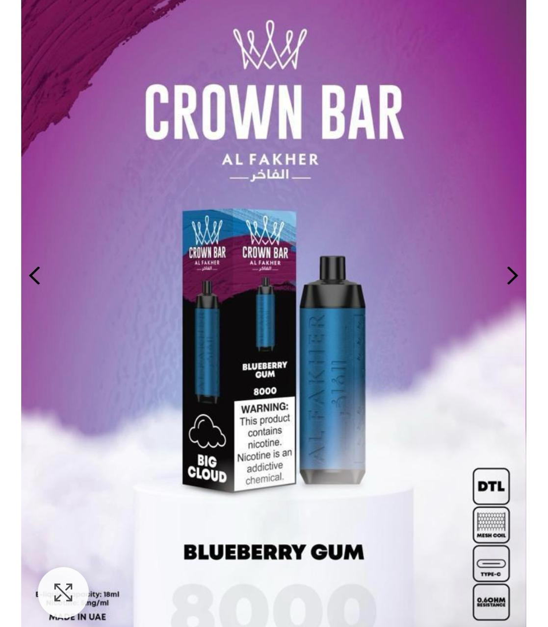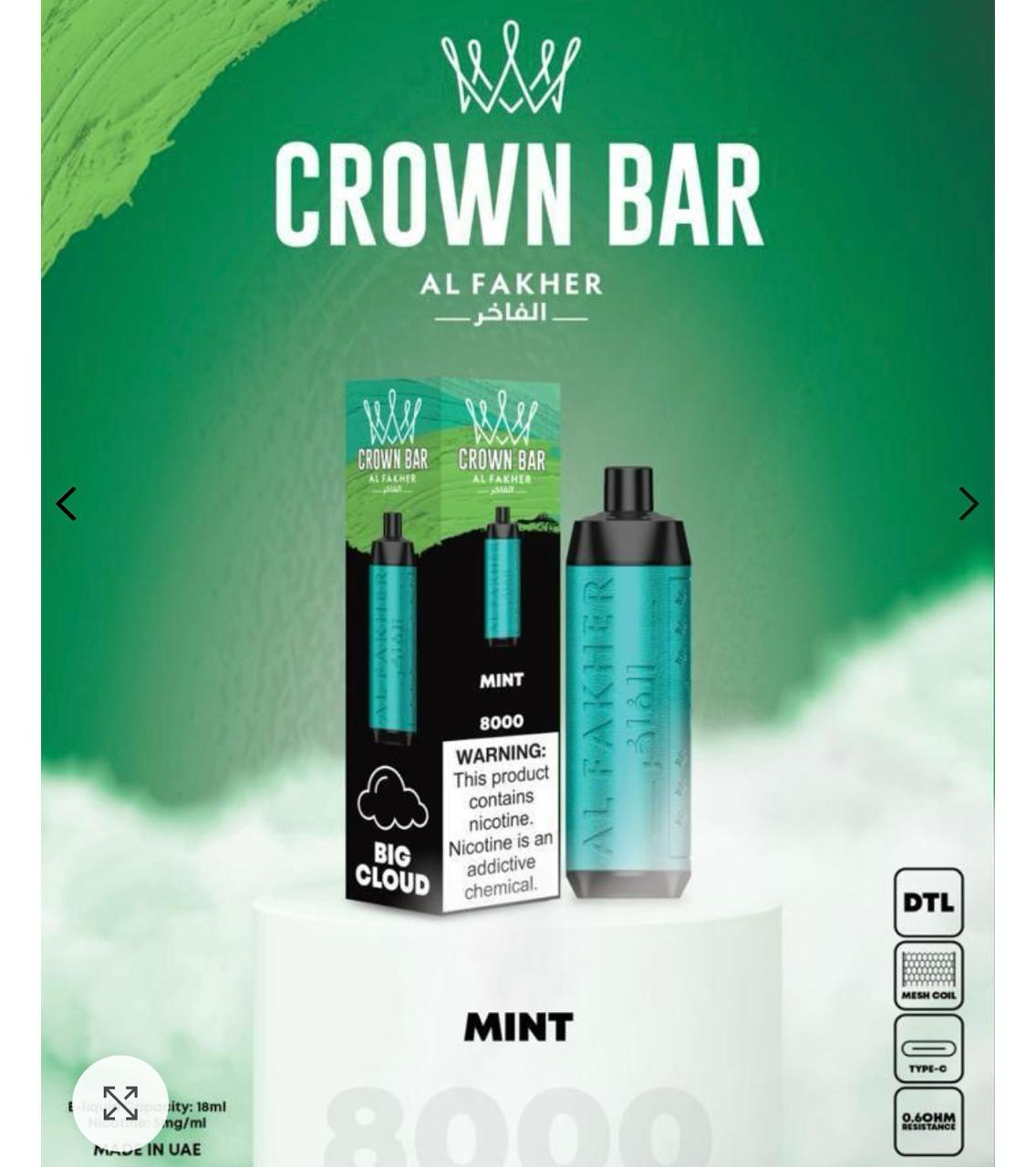 Specification of Al Fakher 8000 Puffs Crown Bar Disposable 5mg DTL: