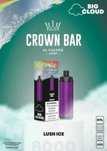 With a generous 18ml e-liquid capacity and 5mg/ml of nicotine, the Al Fakher Crown Bar (Big Cloud) Disposable Vape promises a satisfying and flavorful vaping journey in a convenient, single-piece format. Elevate your vaping experience with the Al Fakher 8000 Puffs Crown Bar 5mg DTL, representing the pinnacle of disposable vaping technology.